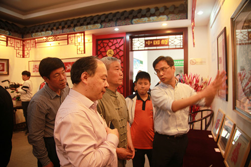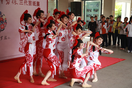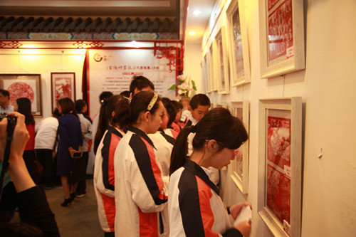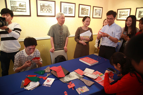 在一楼的中国韵和二楼世界风展出了金陵神剪张三代的剪纸作品,众多师生一起观赏,并不时与大师交流着。有几位跟随大师学习过的beat365学生也主动参与现场剪纸。