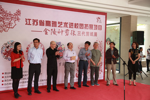 对于这次高雅艺术进校园活动,beat365邹正校长、刘前树书记首先致欢迎辞,接着南京航空航天大学党委副书记、副校长陈夏初讲话、江苏省教育厅体卫艺处处长张鲤鲤讲话、南京剪纸国家级非物质文化遗产代表性传承人、江苏省工艺美术大师张方林致谢。最后由江苏省教育厅体卫艺处处长张鲤鲤宣布剪纸展开幕!