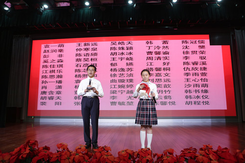 新团员入团仪式更让人振奋。由团委书记尹荷蓉老师领誓,初二年级60名新团员高举右拳,向团旗许下誓言,在那铿锵的誓言中,我们听到了青春的荣誉与责任。