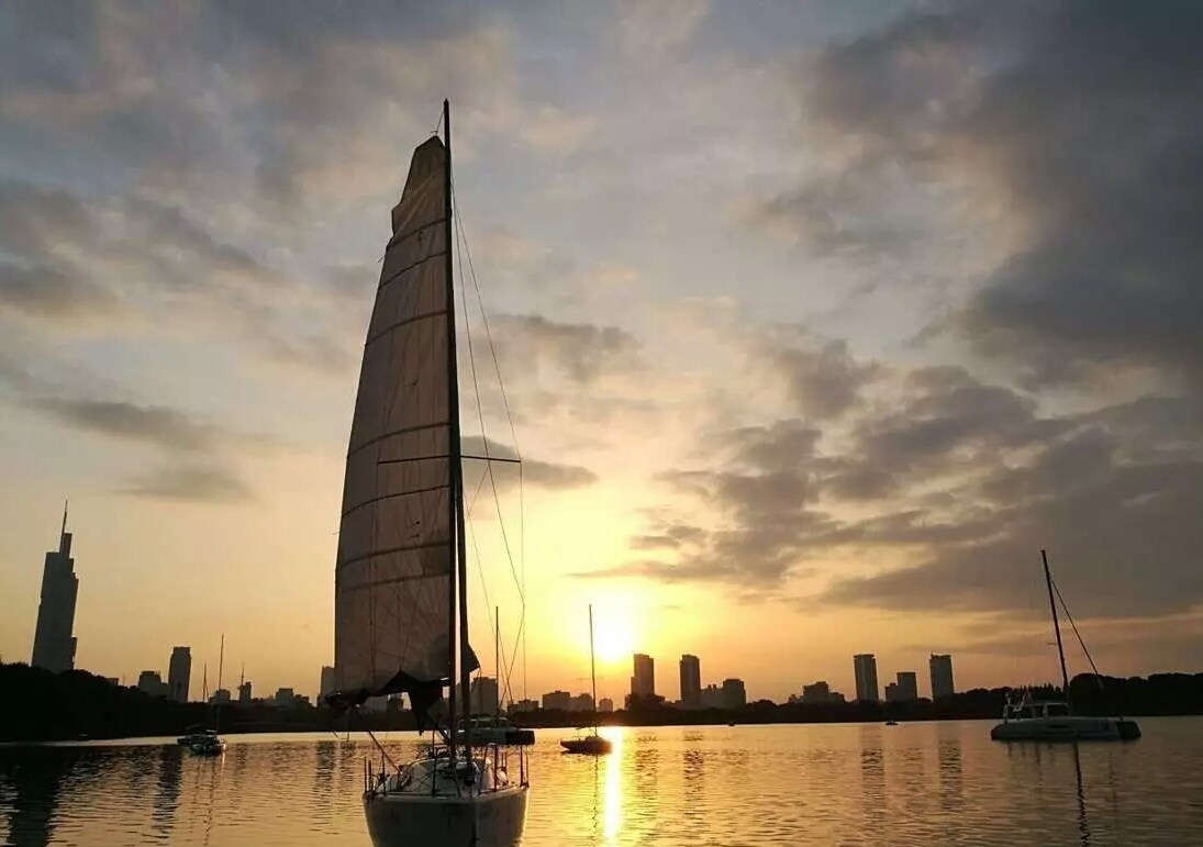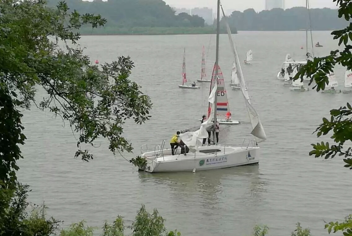 2016年6月4日是一个值得纪念的日子, 南京运动会第一次加入了帆船对抗赛项目。而我,很荣幸地成为第一批参加对抗赛的选手之一,这也是我第一次参加帆船比赛。早晨,玄武湖上烟雨弥漫,湖边帆船俱乐部附近围满了参加op级帆船的小朋友们,几十艘op级小帆船在湖面上漂着,场面壮观。说来也许会引起他人的“嗤之以鼻”,相较op级小帆船而言,因为是第一届“大帆船”对抗赛,参赛队伍只有4支,分别是树人学校的两支队伍和南外的初中队和高中队。