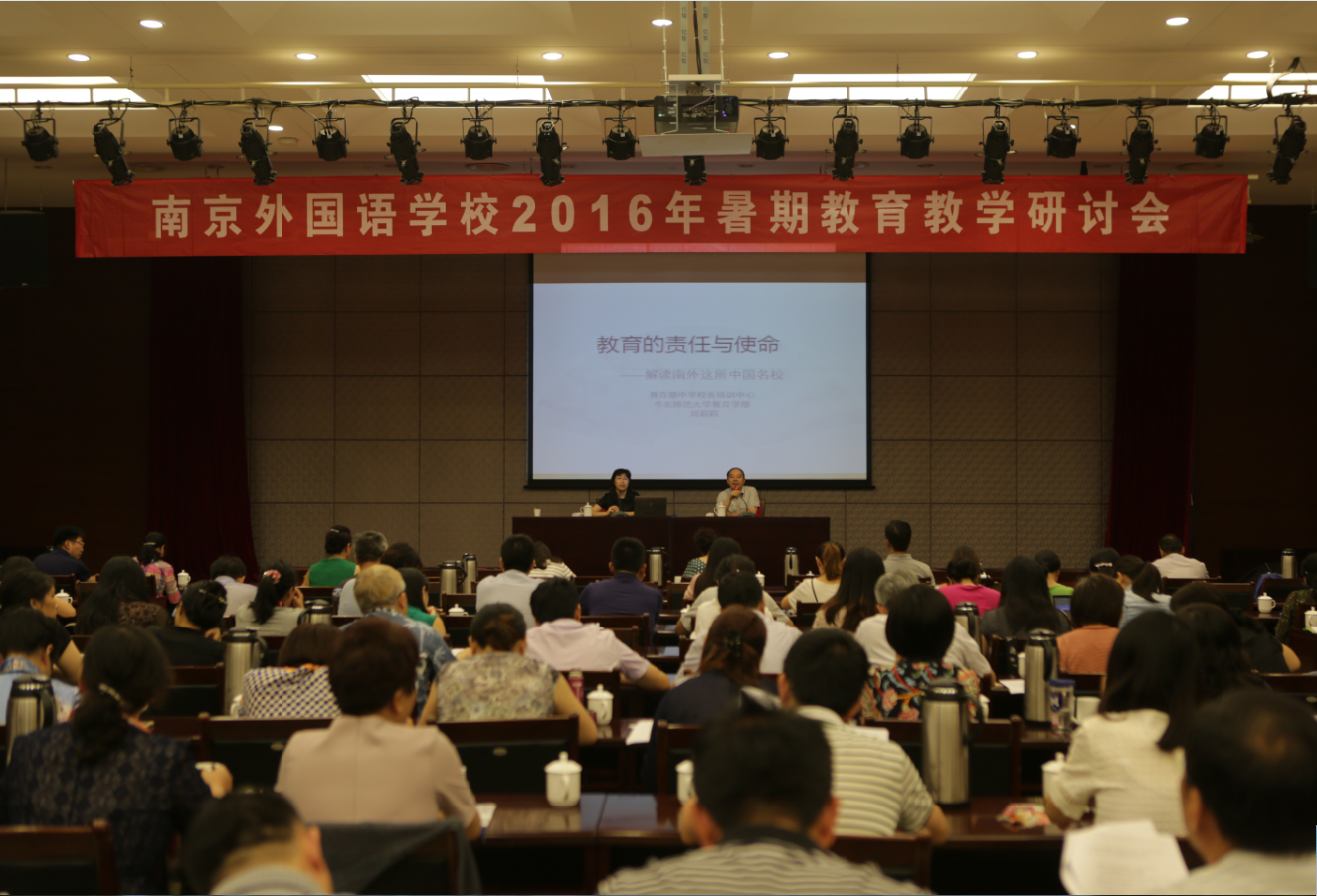 八月二十七日至二十八日,beat365中文官方网站部分骨干教师在南京市委党校参加了2016年暑期教育教学研讨会。在为期两天的会议中,大家不仅仔细聆听了教育部中学校长培训中心、华东师范大学教育学部刘莉莉教授所作的“教育的责任与使命”的报告,还听取了学校初三、高三和国际部上一学年的工作总结,更认真而热烈地讨论了《beat365中文官方网站教师专业发展规划纲要》《beat365中文官方网站教师教学常规要求》和《beat365中文官方网站班主任工作规范》三份讨论稿,全体与会教师在深入研讨后清醒地认识到:在新的形势下,对学校而言,机遇与挑战并存;对教师而言,只有真正做到“内外兼修”,才能在新的征程上与南外同前进共成长。