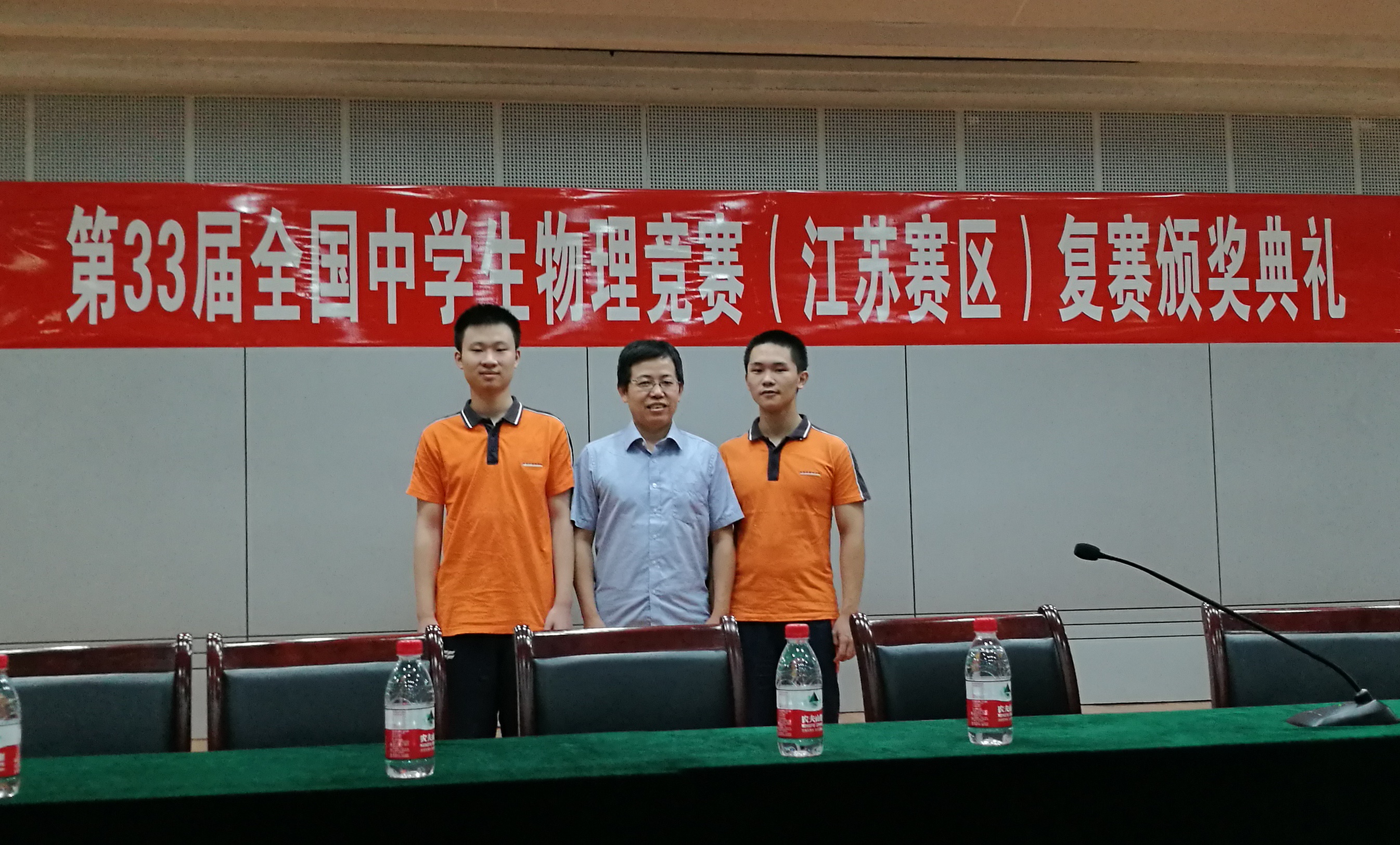 在刚刚结束的第33届全国中学生物理竞赛(江苏赛区)复赛中,beat365同学取得优异成绩:刘怡然、汪铮(高二)、姚冠文、乌家宁、胡笑男、高轶寒、周南翔(高二)等7位同学获得全国一等奖(江苏赛区),其中高三(1)班刘怡然同学与高二(1)班汪铮同学进入江苏省集训队。同时,来自高中各年级的27位同学获得江苏省一等奖的好成绩。