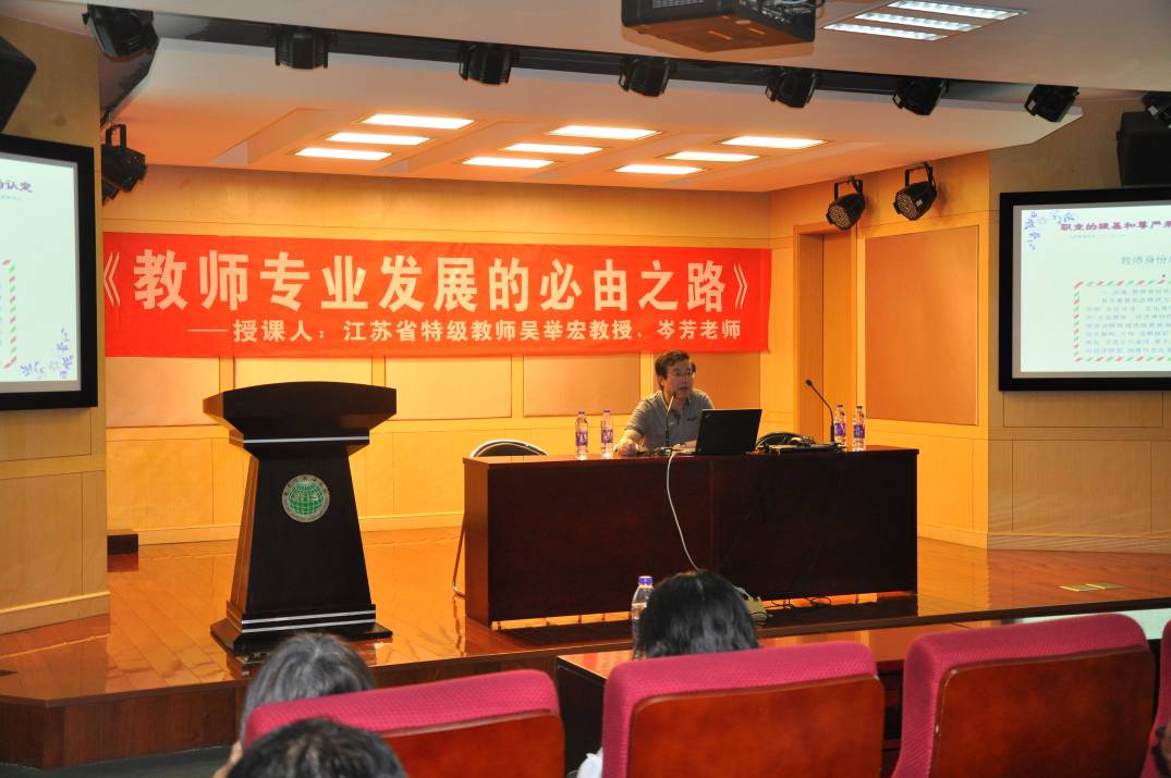 2016年9月27日下午1:30,在beat365中文官方网站小剧场举行了beat365中文官方网站本部、河西和仙林三校生物组联合教研活动,特邀江苏省特级教师、教授级高级教师、省教研员吴举宏教授做了《教师专业发展的必由之路》的专题讲座,本次活动除了三校生物教研组老师参加之外,还邀请了南京市生物名师工作室、南京市青年骨干教师研训班的部分生物老师近一百多人参加了学习和研讨。