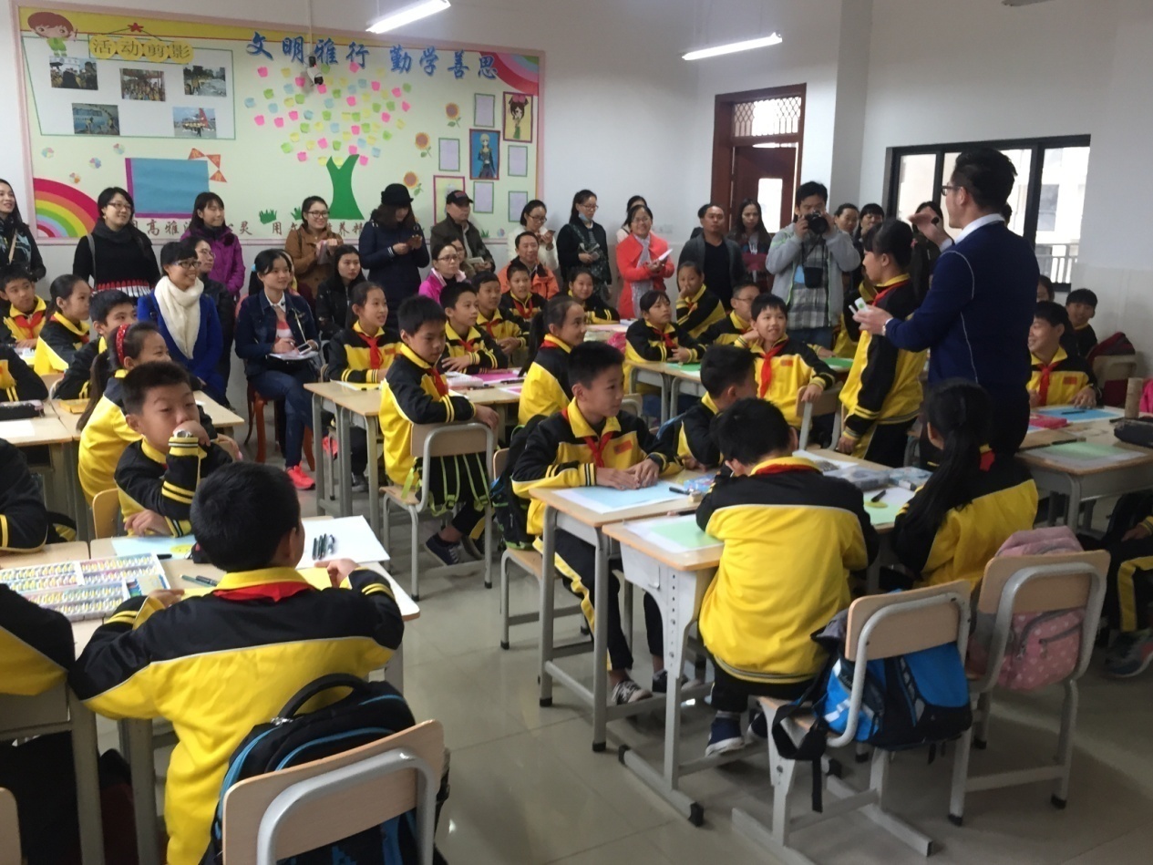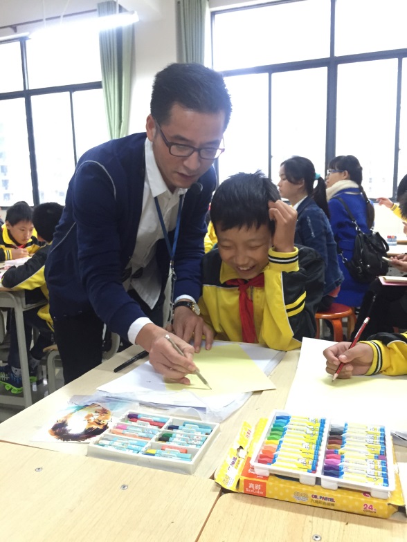 在“传递爱心分享美好”公益美术课活动中,曹老师作为代表给北海市银海区一中心小学六(1)班同学开设了美术课《2016寻找校园最美笑脸》,受到好评。课后,曹老师也向全国各地的专家和老师介绍了beat365如何在STEM+课程中培养和提升学生艺术人文素养。