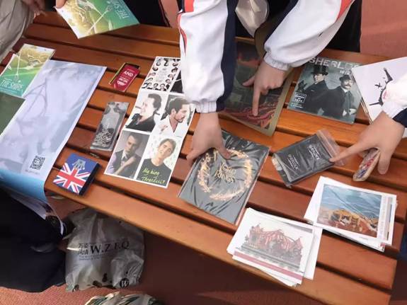 这位同学解释,他们此次选择出售一些与英国文化相关的畅销电影书目的衍生饰品,比如说关于《哈利·波特》系列的卡贴,关于《魔戒》的笔记本、以及大热英剧《神探夏洛克》的挂坠和明信片。考虑到这些影视作品的“粉丝”众多,社员们认为这会为义卖带来一定的人气。此外,社员们又别出心裁地开展了答题竞猜活动,只在为各同学搭建一个相互交流的平台。