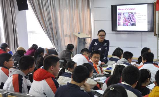 第二节由初二的周文老师授课,周文老师选择的是剑桥英语教程第三册Unit 18 Changes in women’s lives,文本主要介绍了女性生活发生改变的原因---工业化和两次大战和女性生活的具体改变---选举权和教育。周老师授课的第一个环节是让学生通过找小标题来快速了解文本的大意,并鼓励学生通过思考把小标题按照“原因”和“表现”来分类。通过这个设计可以让学生对文章的结构有初步了解。第二个环节是带领学生细读第一和第二部分。周老师通过问题引导学生明白“世界大战”促使女性从内心想要改变自己的生活。第三部分重点讨论了为什么女性想要争取选举权,以及为何选举权至关重要,第四部分重点讨论了教育给予女性生活和地位的改变。在整堂课的follow-up部分,周老师以今年1月份华盛顿的女权大游行为背景,让学生来探讨男女在“工作”、“政治”和“教育”这三个方面仍然存在的问题。