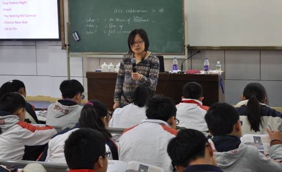 活动由李娜老师执教的一节课开始,李娜老师选择的是剑桥英语教程第一册Unit 32 Living traditions, 文本主要是介绍在英国的六个不同的节日和各自的庆祝方式。初一学生在李娜老师的引领下,先是通过阅读找到关于节日what,when,who,how这些基本信息后,再启发学生们横向比较这些庆祝方式的异同,在此基础上李娜老师又领着学生对文本进行深层次挖掘,就文本的相关信息进行追问,同时鼓励学生做出合理猜想,并要求学生课后通过查找资料得出答案,并就文本内容和查找到的资料编一个专访。