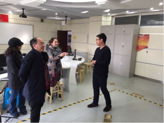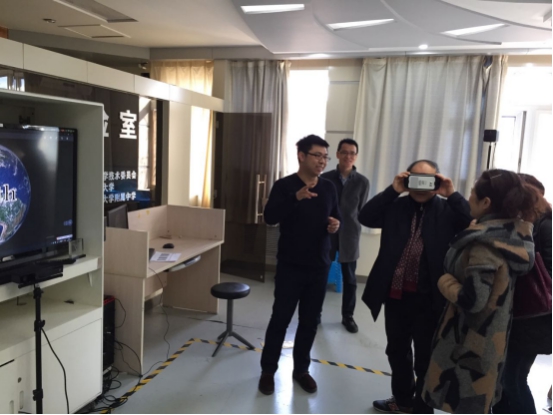 随后,邹校长一行来到了施一宁老师的实验室,体验了VR在中学课堂的应用以及人大附中学生自行开发的中医穴位按摩指导软件。