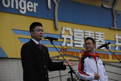 王:是的,泱泱中华,礼仪之邦;温文尔雅,谦恭礼让,礼仪作为中华美德,不仅在校外我们应该注意,校园内的礼仪也同样重要。下面有请高二5班的周子涵和初一5班的奚晨源两位同学给我们带来相声《话说礼仪》