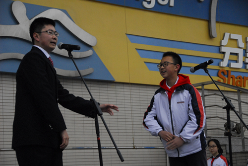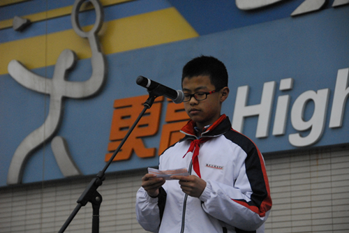 王:下面我们有请高一8班的王嘉成来和大家谈一谈文明礼仪对于一个优雅的南外学子来说有多么的重要。大家欢迎。