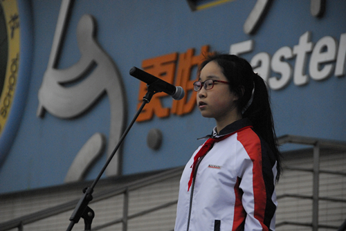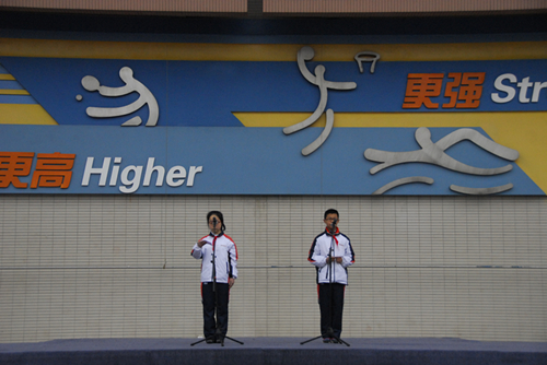 解:大家好,我是来自初一(11)班的解麒澳。今天的晨会由我们为大家主持