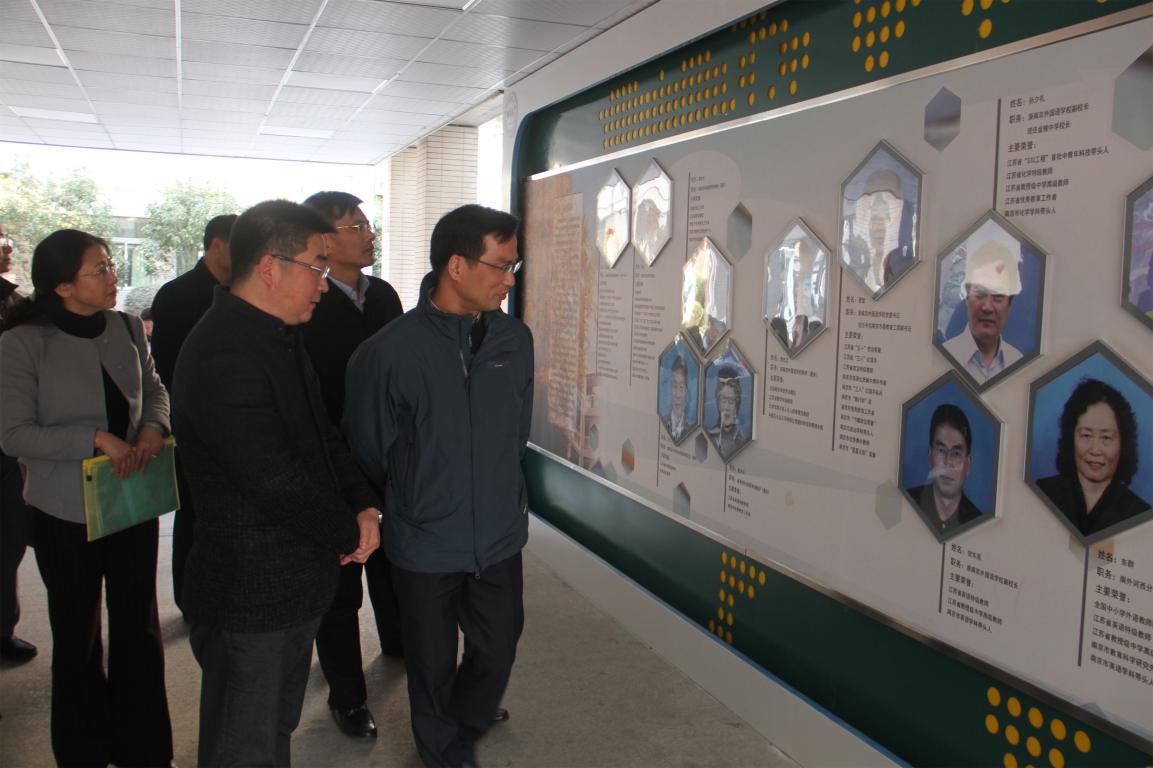 在刘前树书记的陪同下,刘元良局长首先参观了beat365教学楼一楼大厅的优秀校友墙和名师风采展示。
