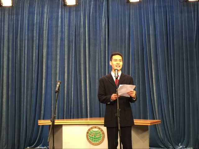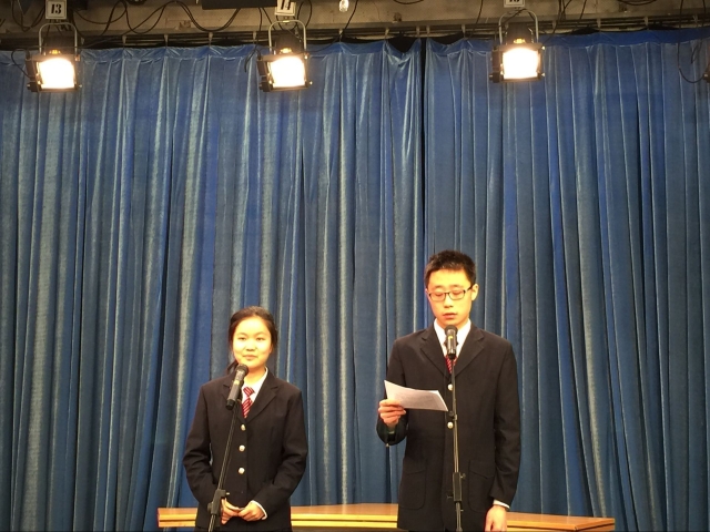 杨:下面有请高三(7)班的刘麓成同学来谈谈何为公民意识,身为中学生的我们又应该如何培养自己的公民意识。
