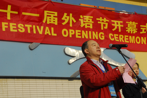 青春は人生で一番楽しい時間です。皆さんの生き生きした姿がいつも目に入ります。近頃、さまざまな国の学生がわが校に来てくれるようになりました。世界中の若者たちが南京外国語学校の国際化の舞台で交流し合い、助け合います。今年の外国語祭のテーマは“青春の歌”です。皆さん、自分の思いや考えを多彩な活動に込めて、青春のメロディーを引きましょう。