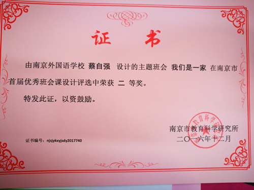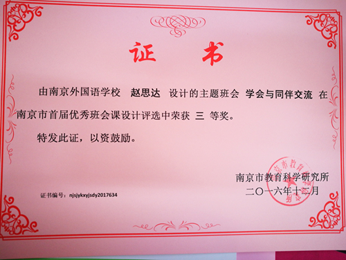 beat365赵思达老师荣获优质班会课方案三等奖。