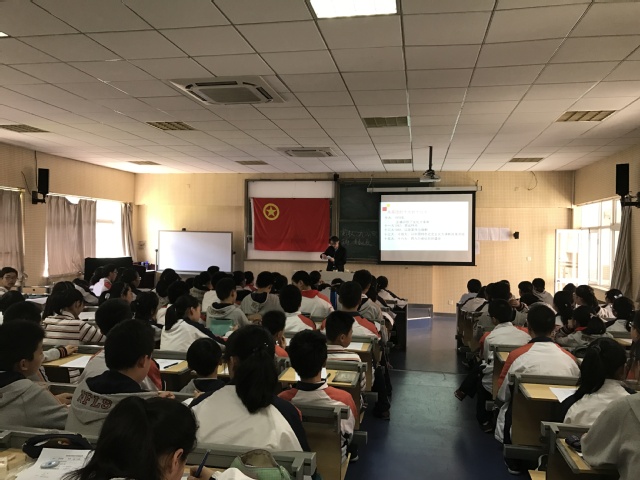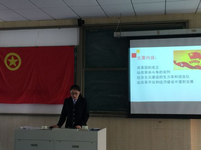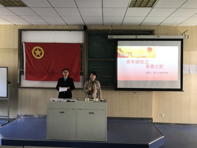 团校第一课——“青春之歌”由校团委委员来自高一(7)班的武润欣同学授课。她主要向同学们介绍了共青团的历史和基本知识,带领同学们认识了团组织的性质。