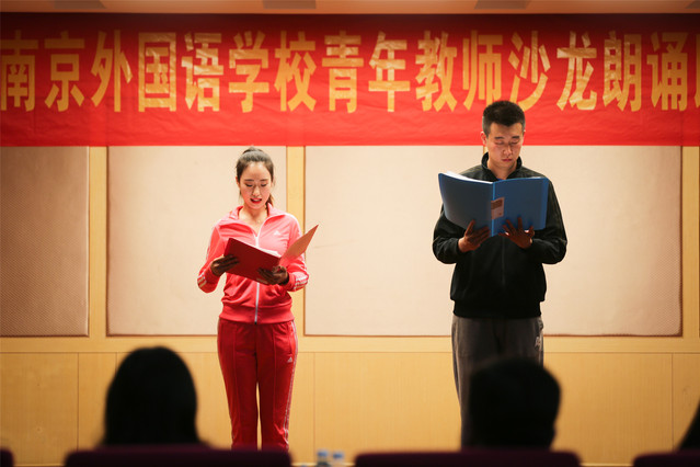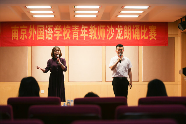 朗诵比赛的最后,钱琨老师和王政老师对朗诵比赛做了精彩的点评。钱琨老师说,看了听了整个比赛的全过程,为南外青年教师选读的美文的深度感到震撼,为大家的诵读技巧感到兴奋。尤其是有一组(刘飞、赵思达)的诵读具有了较高的专业水平,很是振奋。王政老师在点评中指出,南外青年教师诵读已经有一个很好的基础,只要部分老师针对一些小缺陷进行调整,效果会更上一个层次,比如肢体动作的表现,充分脱稿等。