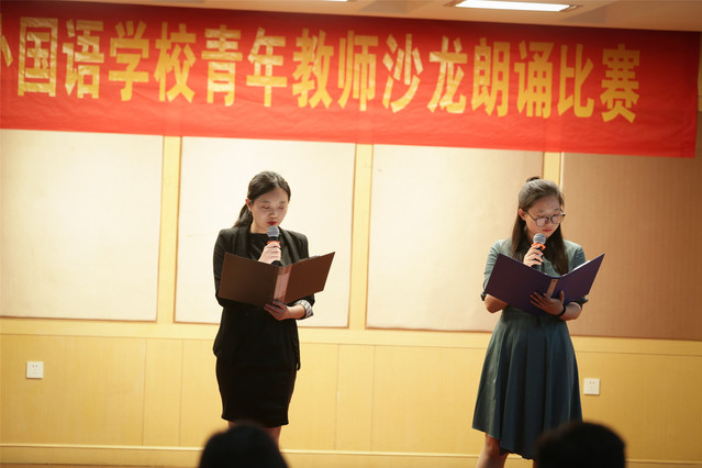 在陈明洁老师极富才华和魅力的倾力主持下,约三十位青年沙龙教师,或单人,或组队,凭借各自对文章独特和深刻的理解,用全身心来演绎文章之美。随着词句的铺展,青年教师的声音或激昂,或柔和,或沉思,或兴奋,或悲伤。青年教师用声音与生命的篇章应和,文章深层的人生意义因而升华,因而变得绵延不断。现场,听刘飞、徐胜媛的三门峡之壮丽,张利、谢亚雄的体育之美,刘飞、赵思达的胡杨之坚,陈明洁的康桥之恋,虞昕、江帆的多语言之清新等等,不一而足,言语实不足以表。