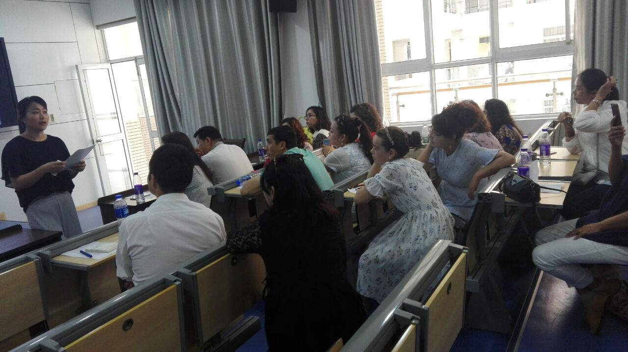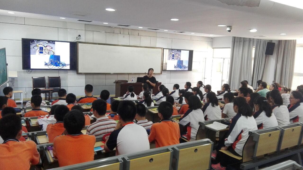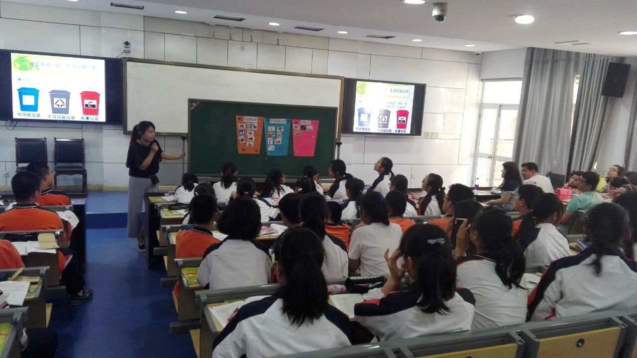 5月26日下午南师大新疆双语初中生物骨干教师培训班的23位老师在他们导师的陪同下来beat365生物组听课学习,马媛媛老师为他们开设了一堂初一的观摩课《保护生物圈——从自身做起》,课后马老师就这堂观摩课做了课堂设计的分析,会后生物组陈芸老师陪同他们参观了生物实验室,具体介绍了高初中数码显微镜的使用和教学应用中的便利。随后参观了解剖室、组培室和生物标本长廊,以及学生制作的DNA模型。陈芸老师还特邀学校STEM+课程基地负责的许亮亮老师介绍了该课程基地相关背景和实验室设备及学校的资金和师资的投入,以及课程的设置意义,获得了新疆同行的钦佩和羡慕。
