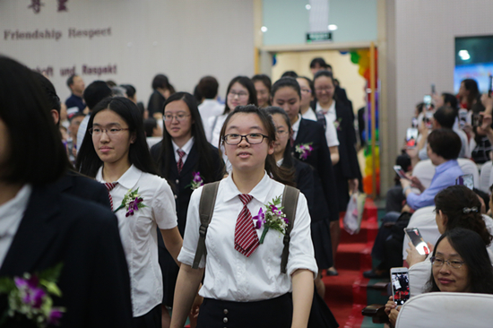 在悠扬的校歌声中,邹正校长一一为毕业生颁发毕业证书并亲切合影,同学们纷纷走向前排,和老师们握手、拥抱,整个会场的气氛达到最高潮。