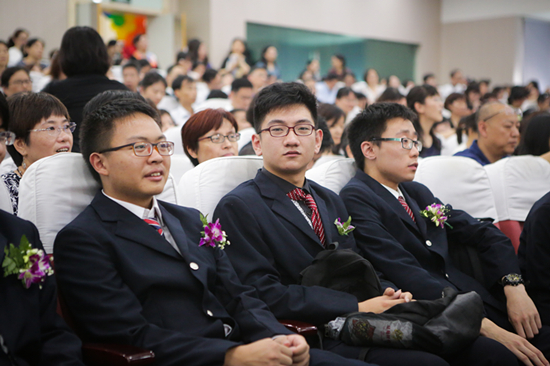 毕业典礼的活动精彩纷呈,细节充满温情和感动:在深情款款的《时间都去哪儿了》的歌声中,全体学生起立面向父母深鞠一躬,表达对父母的感恩之情;学生代表向高三年级全体教师献花,老师们用富于学科特色和人生智慧的话语向朝昔相处三年的孩子们表达爱意,传达教诲;孩子们弹唱起《北京东路的日子》,表达对母校深深的眷恋和感激,现场掌声不断,高潮迭起,很多学生、家长和老师眼里都饱含热泪。