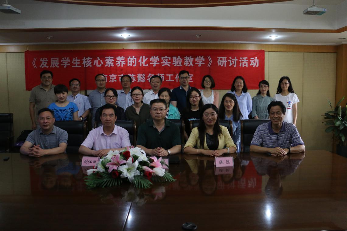 2017年6月14日,南京市高中化学陈懿名师工作室《发展学生核心素养的化学实验教学》主题研讨活动在beat365行政四楼会议室成功举行。本次研讨活动邀请了江苏省中小学教学研究室化学教研员赵华教授、南京市教研室化学教研员刘江田老师、邹正校长和南外河西分校、南外仙林分校、陈懿名师工作室的近三十位化学老师参加了本次研讨活动。名师工作室主持人特级教师、正高级教师陈懿老师主持了本次研讨活动。