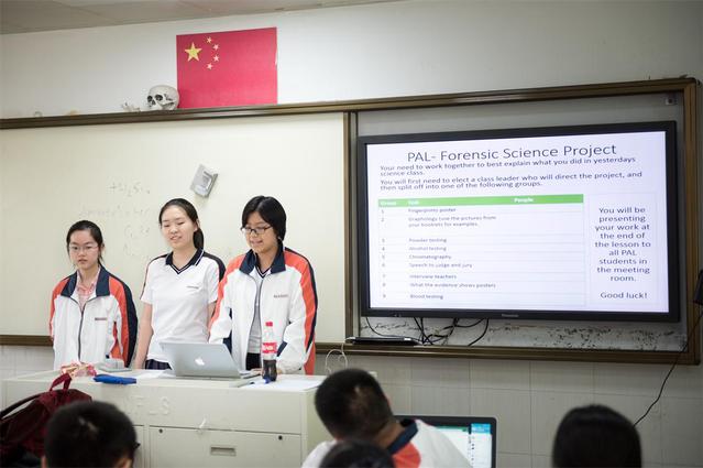 自然学科组的外教老师精心设计了一次模拟犯罪现场调查活动,让学生们以法医的身份通过生物、化学、物理实验鉴定现场留下的线索,分析和判断模拟案件性质,寻找模拟犯罪嫌疑人(三位外教老师模拟担当),并将各种数据通过汇报演讲的形式向模拟陪审团(老师和学生组成)呈现。