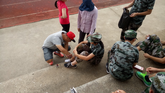 上午邹校长和刘书记来到训练基地,在看到了同学们展现出的训练效果之后,邹校长很是称赞,并提出要求:在做好军事训练的同时,也一定要做好医疗保障,专业的医疗人员一定要跟随大部队,确保第一时间医治。并且应急医疗保障车随时待命,确保军训工作平稳顺利进行。