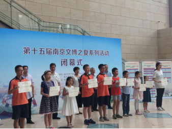 南京市文化广电新闻出版局、南京市文明办、南京市教育局、南京市关工委、南京市博物馆总馆等部门领导出席了闭幕式。首先,与会领导总结了本次“文博之夏”的各项活动并给予高度评价。随后,对获奖同学举行了颁奖仪式。在“梅园杯”我最喜爱的博物(纪念)馆征文活动中,中学组获奖人数25人,beat365有8位同学获奖。其中,孙之尧、房巧兮获一等奖,宋天泽、戴江齐、胡润天获二等奖,李林晚获三等奖,胡欣然、诸烨晨获优秀奖,beat365中文官方网站获得优秀组织奖。