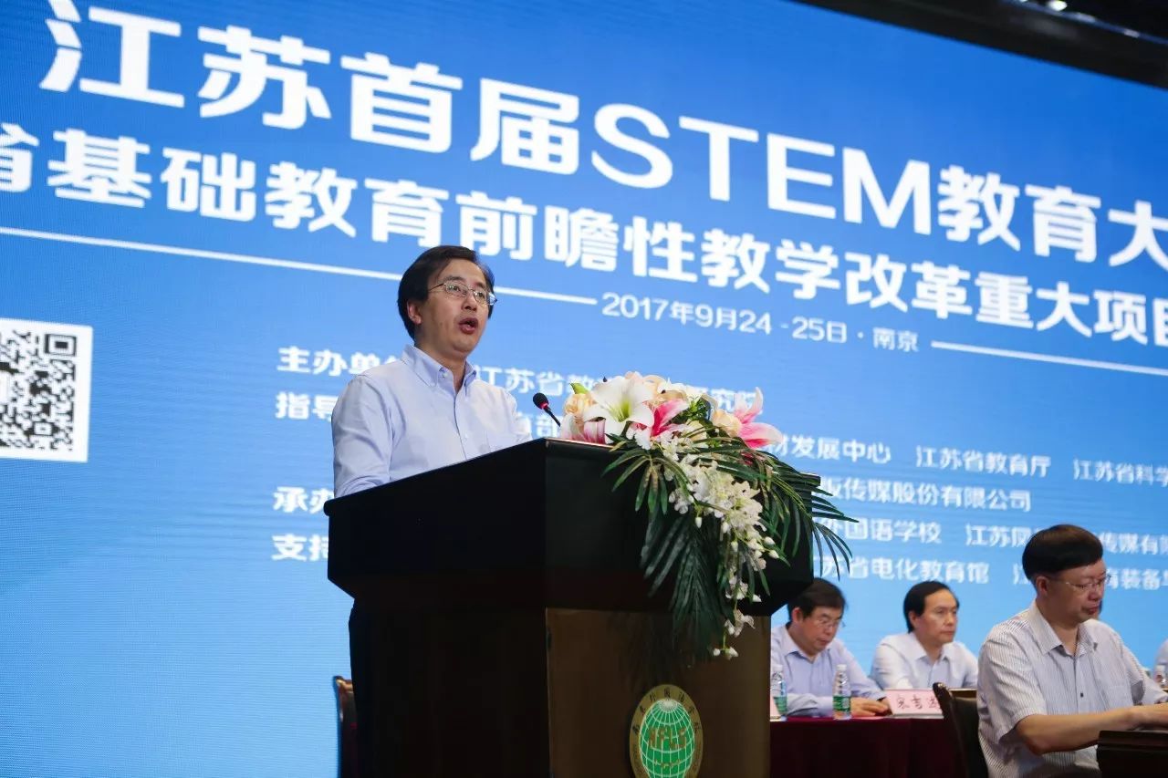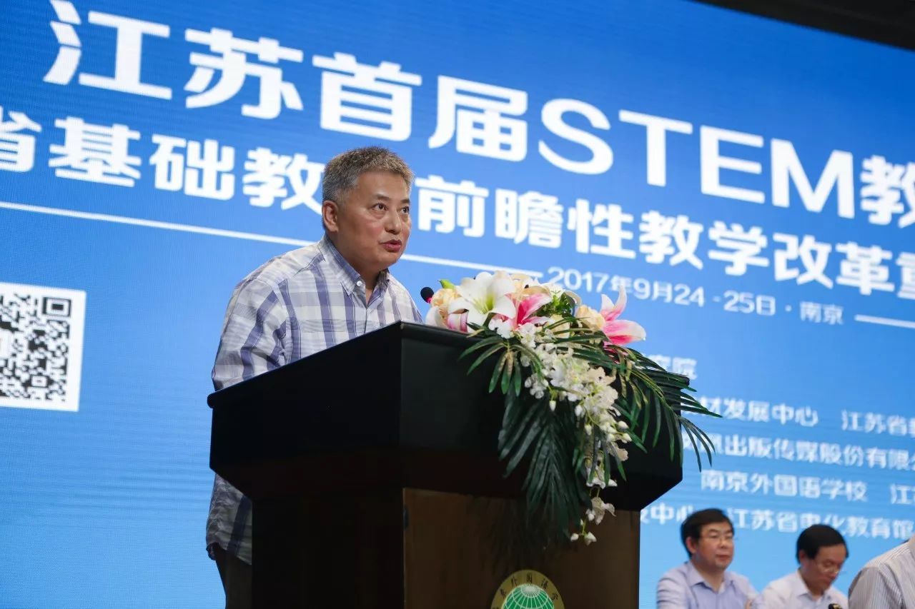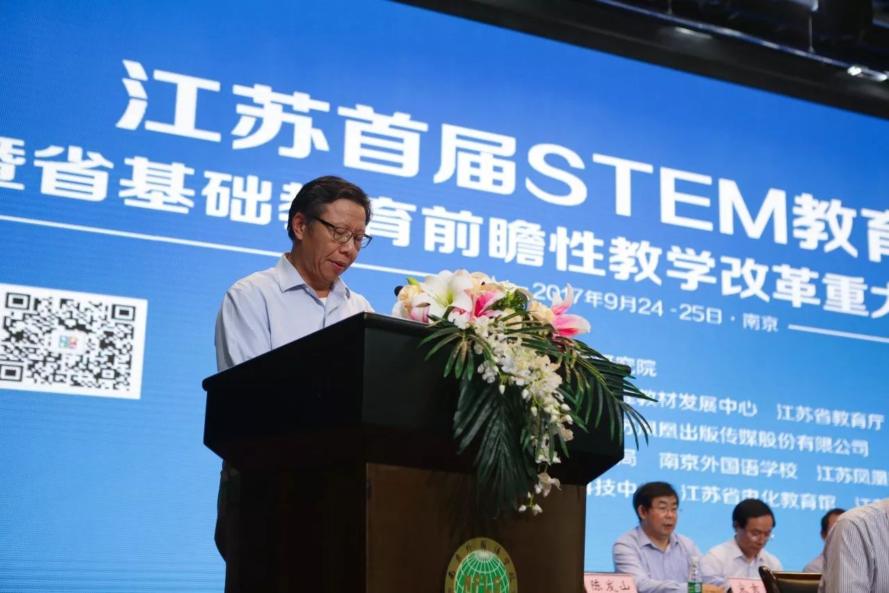 教育部基础教育课程教材发展中心教学处莫景祺处长出席活动开幕式并发表讲话。他指出STEM教育具有重要的战略意义,在促进社会经济转型、教育的多学科融合、人才培养模式和评价方式的变革方面都具有重要作用。他希望江苏通过本土化研究,建立STEM教育的理论体系和话语体系,开发出具有江苏特色的基础教育阶段STEM课程,形成成熟的STEM教育模式,供全国其他省市借鉴、复制或应用。