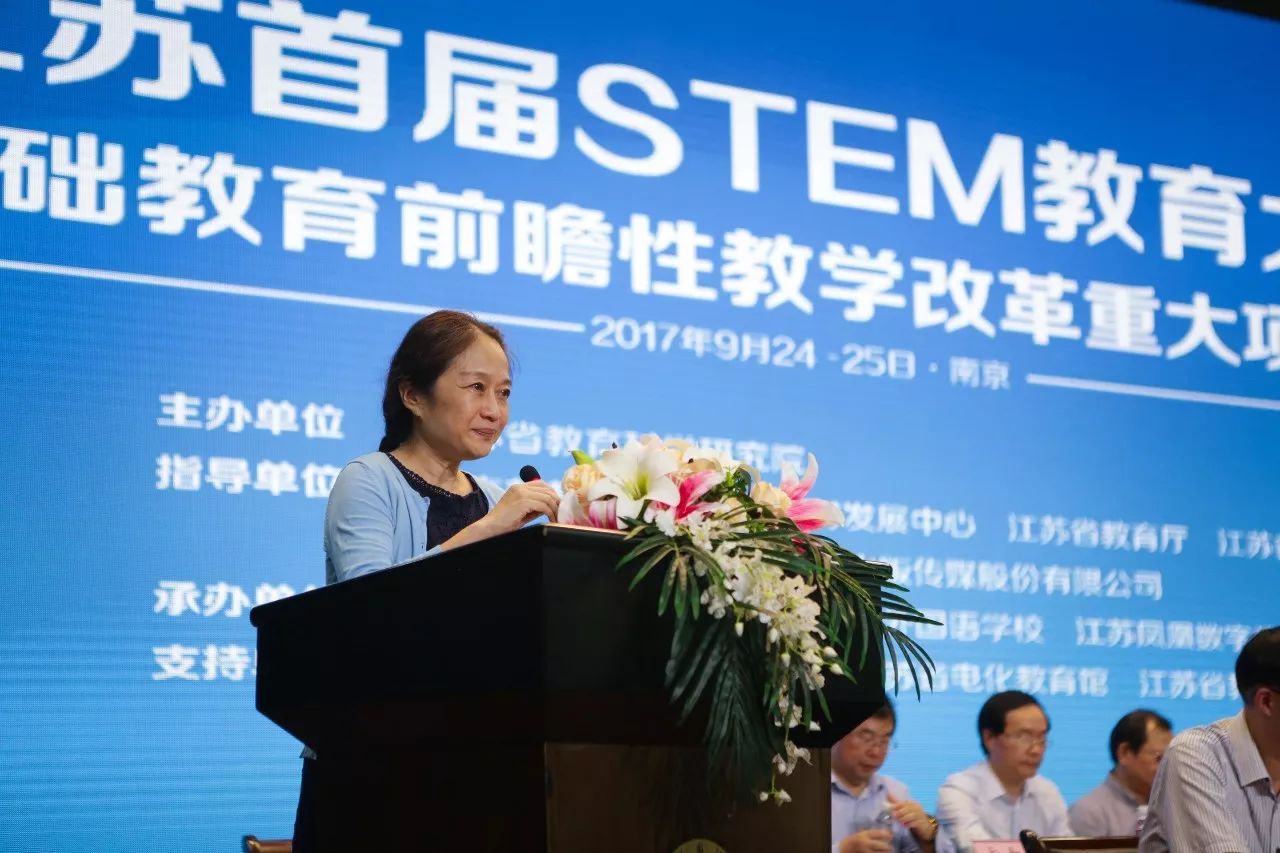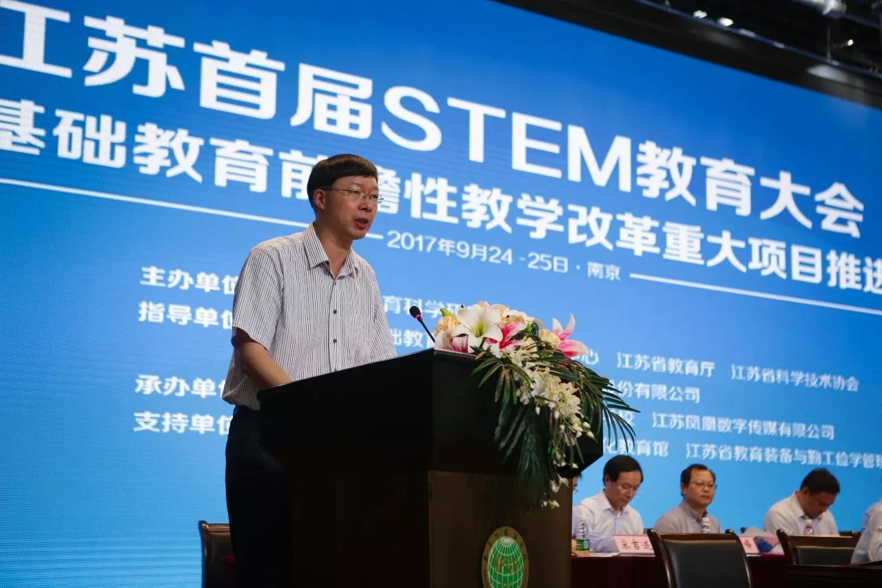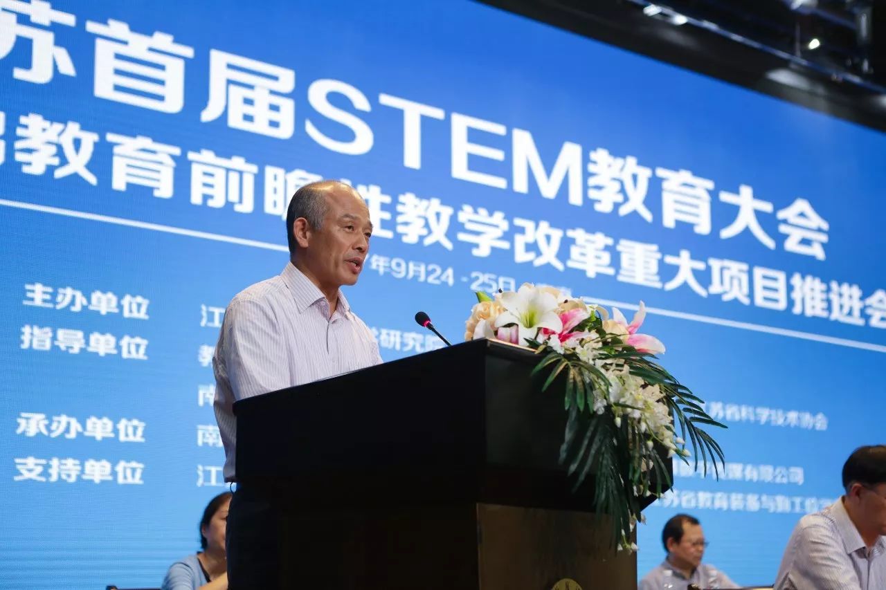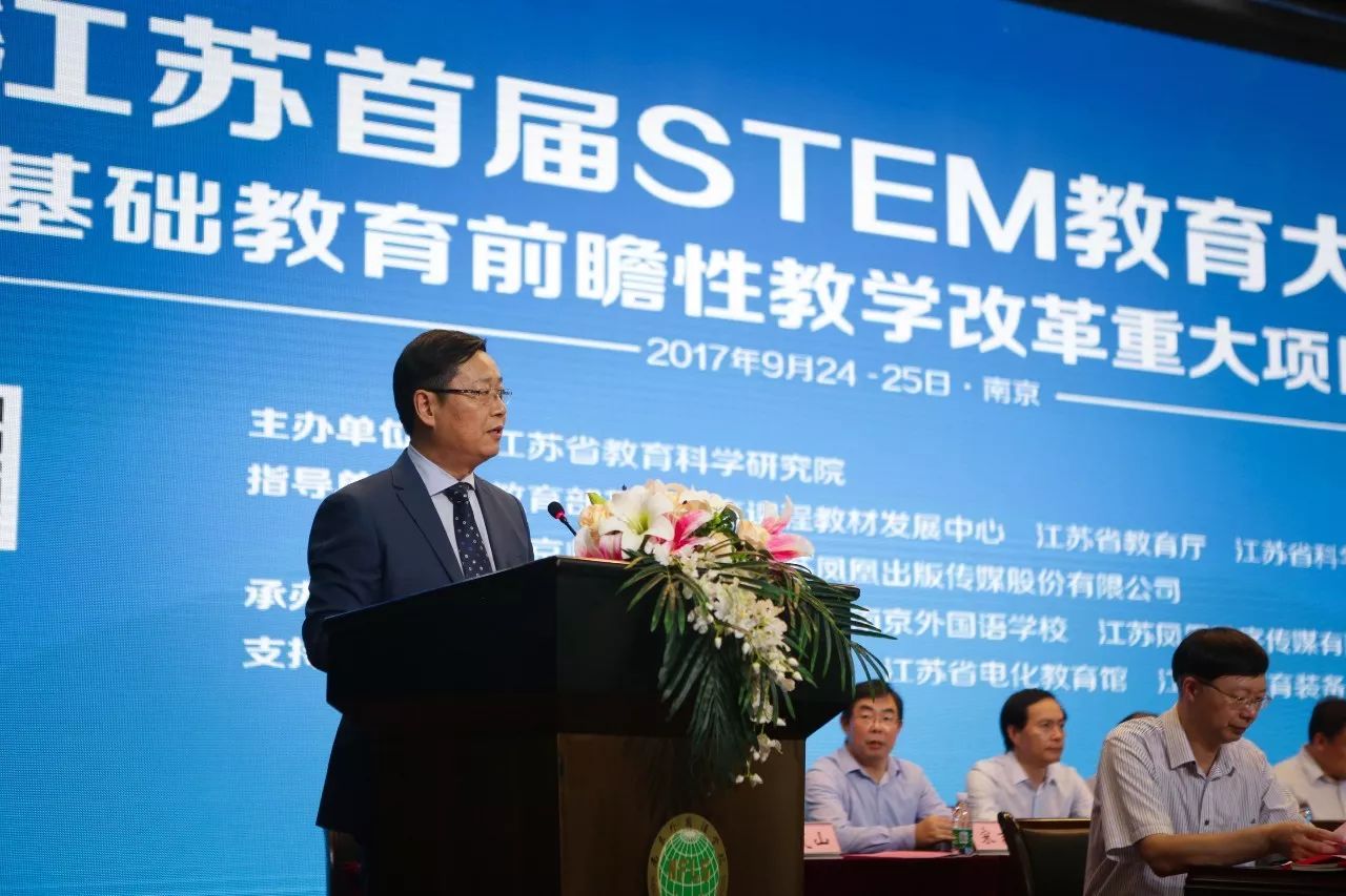 教育部基础教育课程教材发展中心教学处莫景祺处长出席活动开幕式并发表讲话。他指出STEM教育具有重要的战略意义,在促进社会经济转型、教育的多学科融合、人才培养模式和评价方式的变革方面都具有重要作用。他希望江苏通过本土化研究,建立STEM教育的理论体系和话语体系,开发出具有江苏特色的基础教育阶段STEM课程,形成成熟的STEM教育模式,供全国其他省市借鉴、复制或应用。