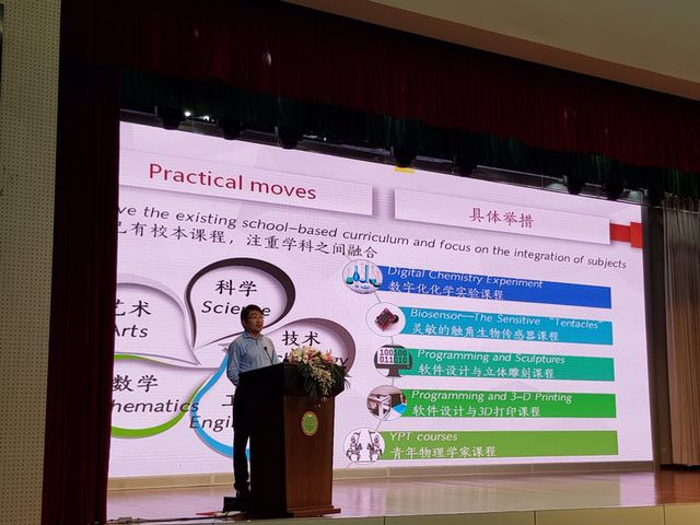 25日上午的经验交流中,beat365朱征副校长应大会邀请,向所有参会代表分享了beat365中文官方网站STEM+教育的探索与实践。朱征副校长首先介绍了beat365在培养目标引领下开展STEM+教育的动因,然后从教师团队建设、校本课程开发、学生社团提升、创新实验研发、国际课程引进、“走向大师”开展等方面详细介绍了beat365具体实践做法以及近两年学生在STEM+教育中取得的丰硕成果。