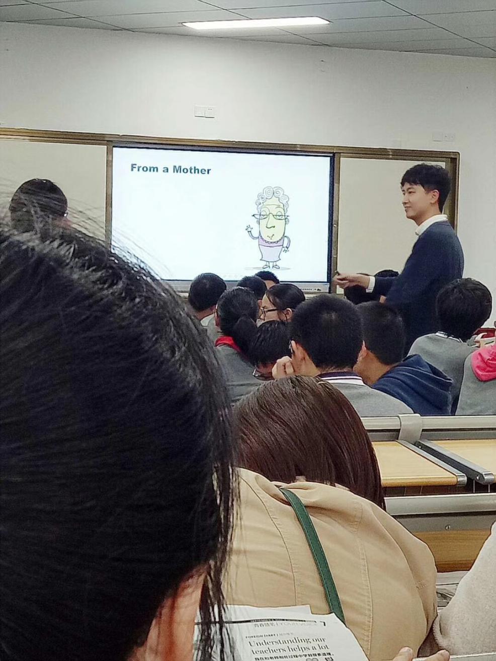 10月11日,由宿迁市英语教研室主办的宿迁市高中英语教研活动在江苏省宿迁中学顺利结束。beat365胡雨辰为本次参与教研活动的所有老师开设了一节公开课。此次公开课的主题为“报刊阅读”,授课内容由授课教师在英文报刊中自选。胡雨辰老师选取了《中国日报》旗下的《21世纪学生英语报》高一板块的‘Choose Money or Passion’,从新闻的性质出发,引导学生了解新闻体裁的特征,让学生学会从不同的视角分析准大学生选择未来专业的心理特点,以及回归到授课学生自我畅想未来就业选择。课堂的最后胡雨辰老师总结内容,升华主题,用自身经历与学生分享在求职中寻求自我理想-实用技能-社会需求的平衡点,从而实现人生价值。这节课不仅拓宽了学生们的思路,也让参与教研活动的老师收益匪浅。