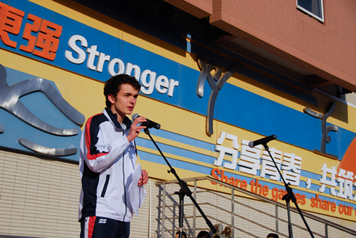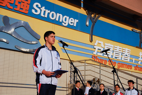 Arthur:老师们,同学们,大家好!我叫安河,来自法国,我的法文名叫Arthur, 在法国,我有两个弟弟和一个妹妹,我将在中国学习一年,我相信这将是一次令人难忘的经历。我喜欢语言学习,也对科学很感兴趣。我喜欢体育,也热爱音乐,会弹贝斯,也搞乐队,会玩水球,也会英式拳击。我希望我能在中国,这个充满文化气息的国家,学到更多不同的东西,接触更多对我来说新鲜的事物,结识更多新的同学们,很高兴能够认识你们!