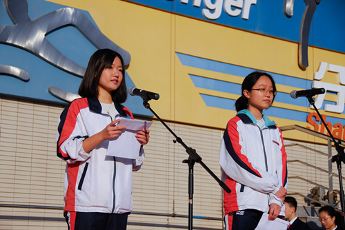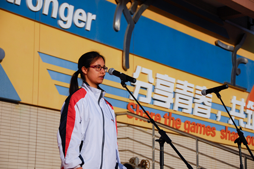 Vivien:老师们, 同学们, 早上好,我叫 Vivien Mai Schwenke 和我十七岁。你们可以叫我,我的中文名字阮佳宁。我是德国的YFU交换学生。我家在莱比锡(Leipzig),德国东部的一个城市。我将在中国呆10个月。