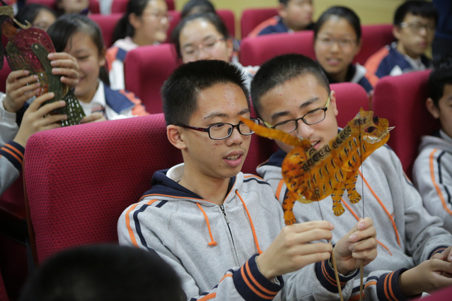 表演结束后,工作坊还与同学们进行了进一步的交流,甚至展示了一个刚刚和我们已经打过好几次照面的老虎形象皮偶,谁能料到它竟已年近百岁!我们还有幸与几个皮偶来了一次零距离接触,同学们拿到手,都小心翼翼地仔细端详。在交流互动中,beat365同学收放自如,流利的英语,广阔的知识面以及翩翩的风度也让凯派林夫妇刮目相看。