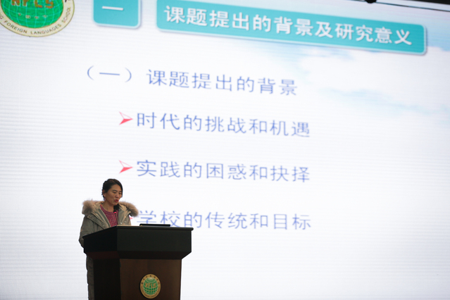 李俊老师汇报的主题为《高中英语批判性思维能力培养途径的实践与思考》。