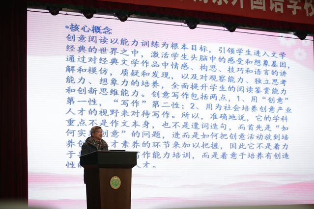 余一鸣老师汇报的主题为《个性阅读和创意写作》。