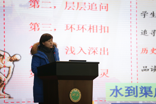 余维老师汇报的主题为《关于学科德育和课堂教学能力提升的思考》。
