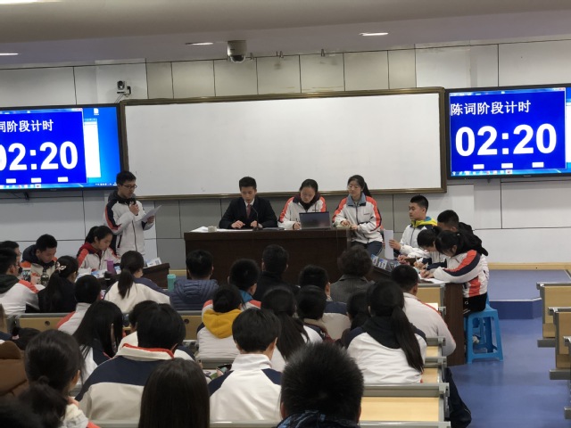 活下去还是守尊严,正方高一(8)班反方与高一(4)班就生命与尊严哪个更重要的话题唇枪舌战,互不相让。双方辩手表现十分精彩尤其是在第四个环节——自由辩论中,随机应变,矛盾冲突堆叠式的交锋让评委老师们赞叹不已。总结陈词部分也一针见血,给予对方有力的回击。