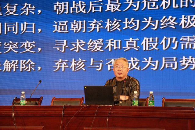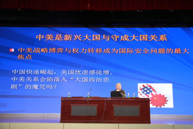 2018年4月16日15:50,在第三个全民国家安全教育日来临之际,beat365邀请了国防科技大学国际关系学院战略与安全研究所执行所长刘强博士,在校报告厅给全体党员老师和高一年级学生,作了《如何看待中美关系和朝鲜核问题》的讲座。