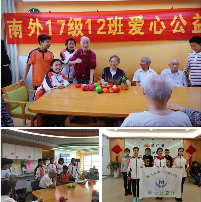 只是校内,在校外,我们也常在社会上帮助需要帮助的人。我们也有着我们的定例公益活动——前往敬老院献爱心。同学们在活动中给老人表演节目、陪他们玩游戏,看到老人们真诚、淳朴的笑脸,我们都感受到了帮助别人的快乐。