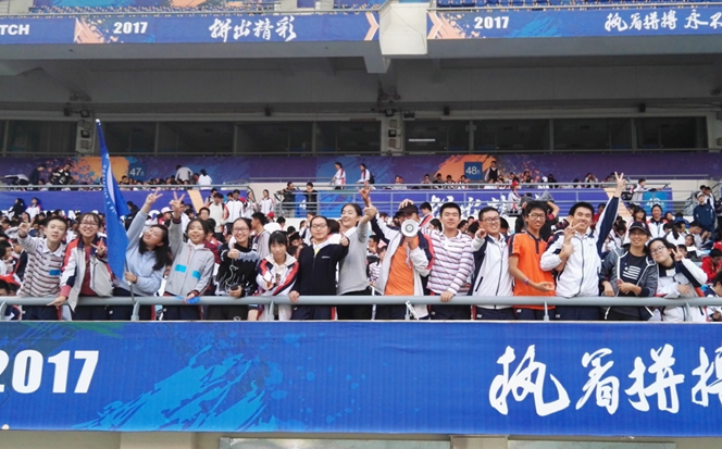 一定是因为,运动会上我们团结一心,奋勇拼搏。明明8班的座位在最后,却仍有大批同学涌向前排,挥动班旗,只为给班上参加长跑的运动员呐喊助威!