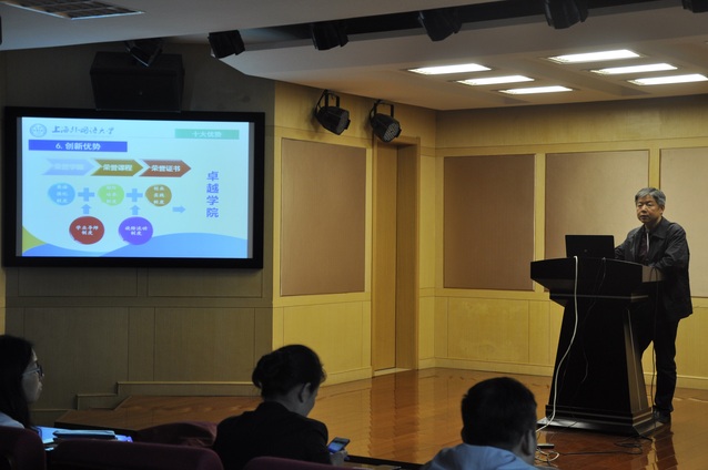 中午,王斌华主任向高二学生和家长介绍了上外的院系分布及学校优势,诚挚地欢迎南外优秀学子报考上海外国语大学。