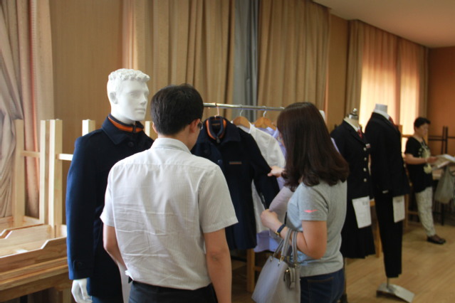 出席本次招标会的有各年级教师代表、学生代表以及家长代表和校纪委的张晓松老师,会议由学生处余俊老师主持。首先她向各位来宾简要介绍beat365校服基本情况。今年参加校服招标的企业是:江苏艾克实业有限公司、江苏派逊服饰有限公司、江苏苏美达伊顿纪德品牌管理有限公司,这三家企业都具有JST产品质量跟踪检验证书并和学校已有多年合作。接着,三家校服厂家分别进行现场陈述,对厂家情况、服装面料款式等细节设计做了简单介绍,并就校服价格给予相应的说明。