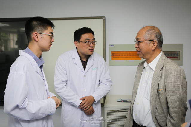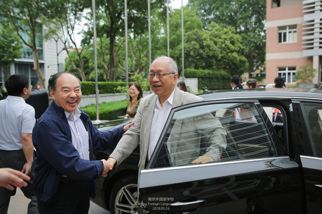 丘成桐先生在邹正校长的陪同下参观南外校园