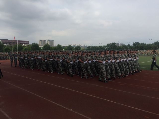 军训的第六天,激动人心的时刻终于到来了,一大早大家就斗志昂扬地在操场上进行最后彩排。每一次摆臂,每一个踏步,每一句口号,大家都力求完美。俯瞰操场,队伍如豆腐块一样方正,每个动作都整齐划一,真是百人一体!大家仿佛忘却了炎热和疲惫,一丝不苟地反复操练着。