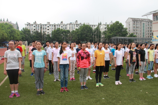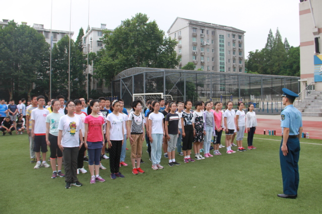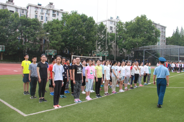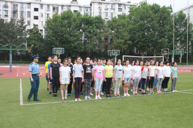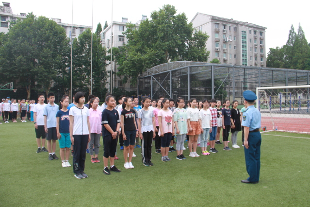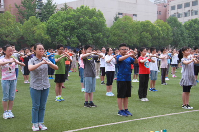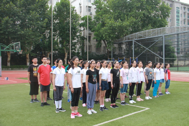 初一入学教育进入第二天,炎炎烈日并没有阻挡同学们前进的脚步。首先进行紧急集合,各班迅速按照紧急疏散路线到操场集中,并清点人数。健功拳练习时,阳光洒在同学们身上,汗水迅速湿透衣服,但同学们一招一式,一拳一掌依旧能做到准确到位。