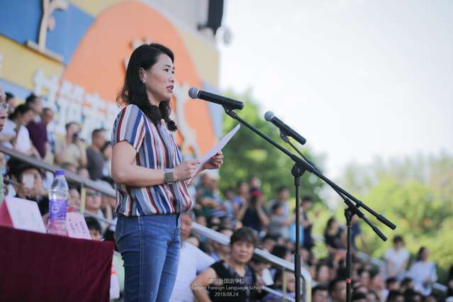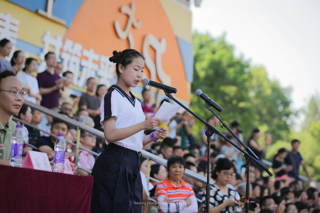 学生代表李可容同学分享了她的入学教育感受,她表示要谨遵邹校长的教诲,发愤图强,成为南外名扬中外的未来。