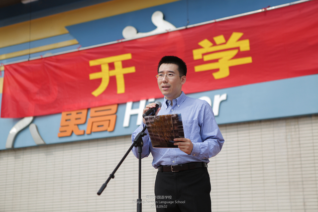 2018年9月2日上午9点开学典礼在操场举行,由学生处尹主任主持开学典礼。